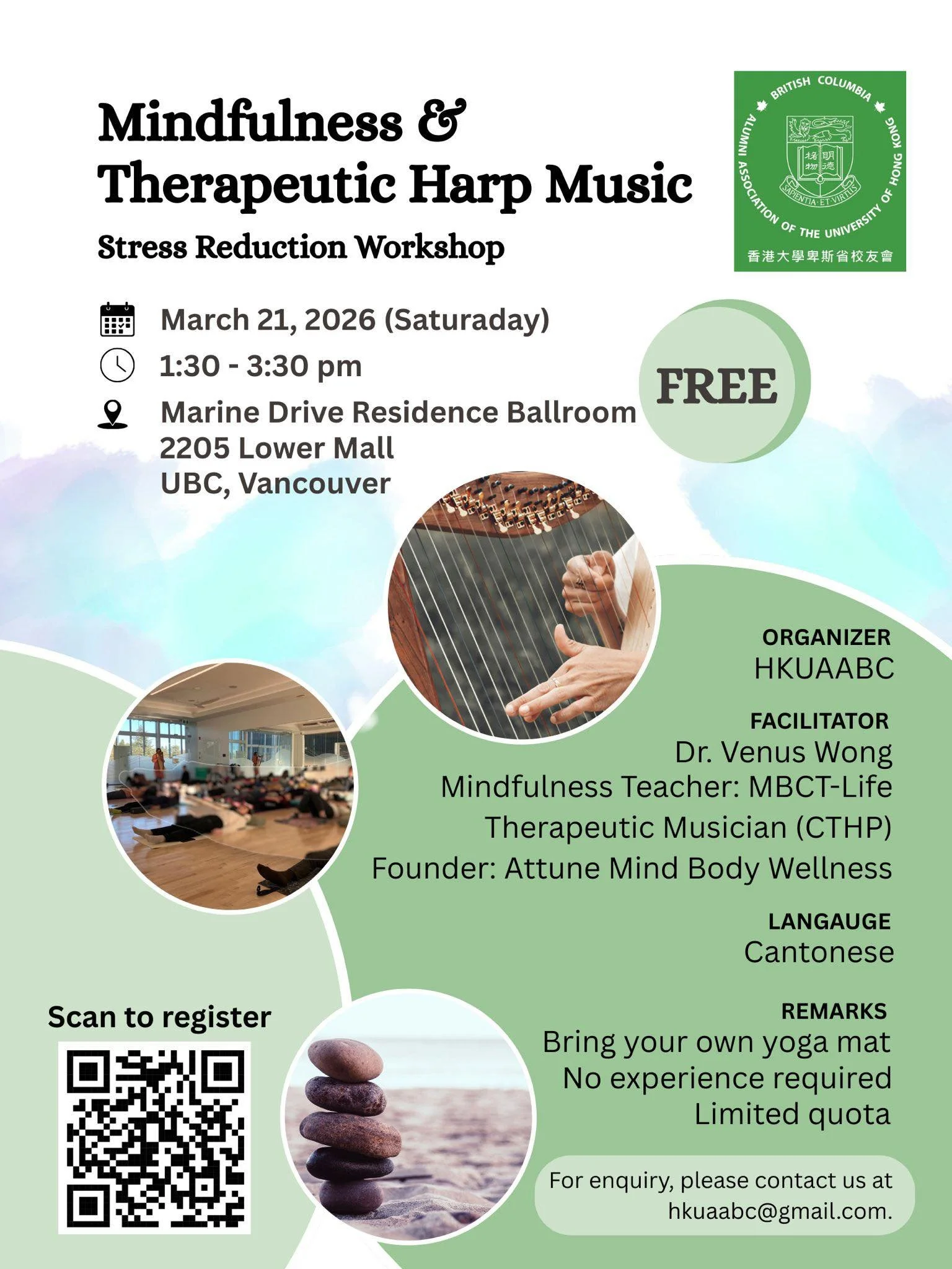 Please email me at contact@attunemindbodywellness.com for more details. I look forward to guiding you on this unique journey of self-discovery and inner harmony.Duration of each session: 1 hour 15 mins. Pricing for a single session: CAD$120 (*special discount applies for participants of Attune Mind Body Wellness public groups. Please provide information of your participation record for reference)